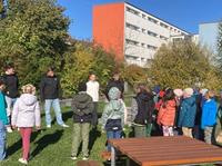 Auf der Suche nach dem Thema für unsere Projektarbeit sind wir auf den Artikel der OTZ „Grünes Klassenzimmer mitten im Schulzentrum“ gestoßen. Die Idee, einen Barfußpfad und eine Kräuterspirale für die Grundschüler zu bauen fanden wir ziemlich spannend und haben uns dies nach Absprache mit Schulleitung und Lehrern zur Aufgabe gemacht. Über die Sommerzeit haben wir erste Ideen gesammelt und konkrete Pläne erstellt. Zum Start des neuen Schuljahres begann auch für uns die praktische Arbeit im Schulgarten. Doch uns ließ die Frage nicht los, wie wir das alles finanzieren sollten. Im Nu war ein Spendenflyer gedruckt und wir zogen los, um unsere Projektidee den Firmen vorzustellen und waren sehr dankbar und überrascht über die vielen Sponsoren, die uns den Bau ermöglicht haben, vorzustellen. Innerhalb weniger Wochen haben wir große Fortschritte gemacht, auch weil Herbst und Winter nahten. Die Einweihung stand bevor und wir überlegten uns, wie wir das Ganze den Grundschülern präsentieren können. So entstand noch ein kleines Kräuterhandbuch, ein Schild für die Nutzung des Barfußpfades, sowie ein Hörspiel und ein Komposter, den wir aufgrund der vielen gesammelten Spenden auch noch errichten konnten. Die Spannung stieg und am Mittwoch, den 16. Oktober 2024 war es dann endlich soweit: